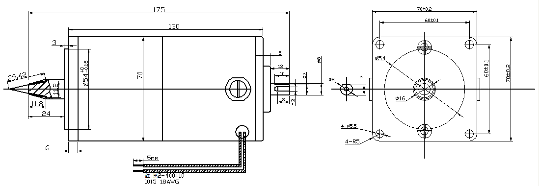 | 型號(hào) | 電壓 (V)DC | 額定電流 (A) | 額定轉(zhuǎn)速 (r/min) | 額定功率 (W) | 額定扭矩 (N.m) | 長(zhǎng)度 (mm) |
